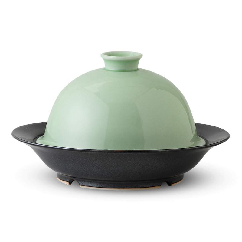 西日本陶器 ランチャン(Ranchant) メタボ蒸すクック グリーン 皿:17.9x19.5x4.3蓋:Φ15.5x8.5(cm) グリーン(皿:鉄砂) 有田焼 日本製