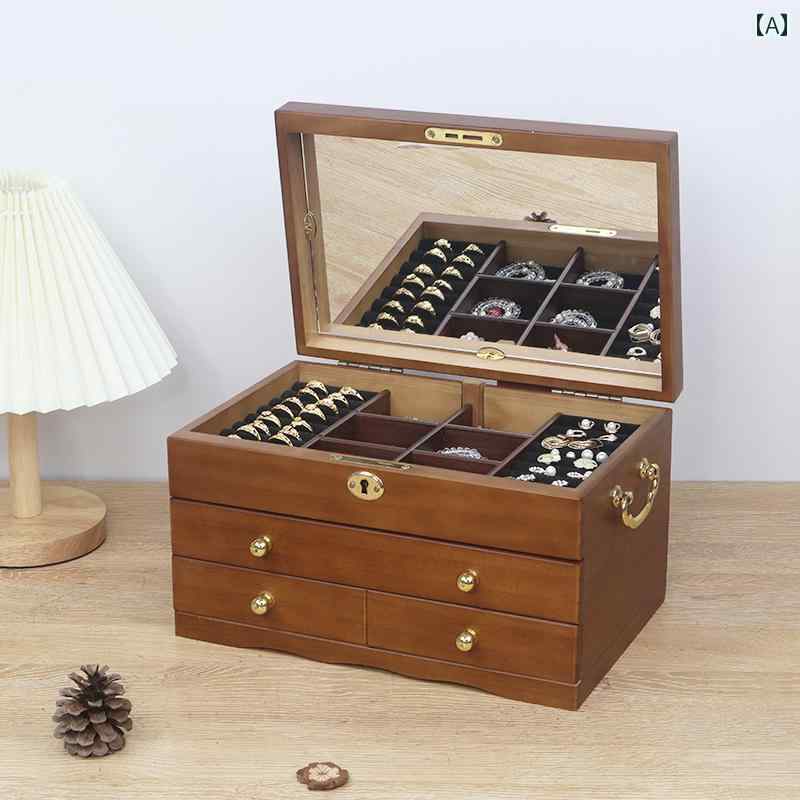 ジュエリーボックス 収納ボックス ロック 付きの 無垢材製 ジュエリーボックス。大容量。 ビンテージ スタイル。 伝統的な チャイナ風で ジュエリー ネックレス 装飾品の 保管に 最適です。