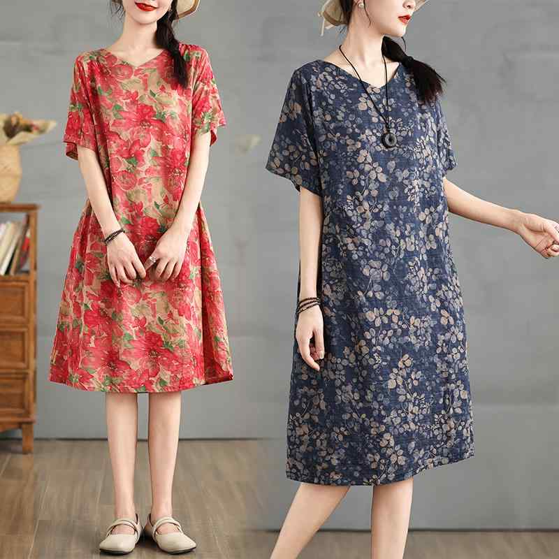 レディース ファッション 服 オシャレ カワイイ 女性用 シンプル 大人カワイイ 大きいサイズ 婦人服 夏 ゆったり エスニック レトロ プリント 半袖 ドレス