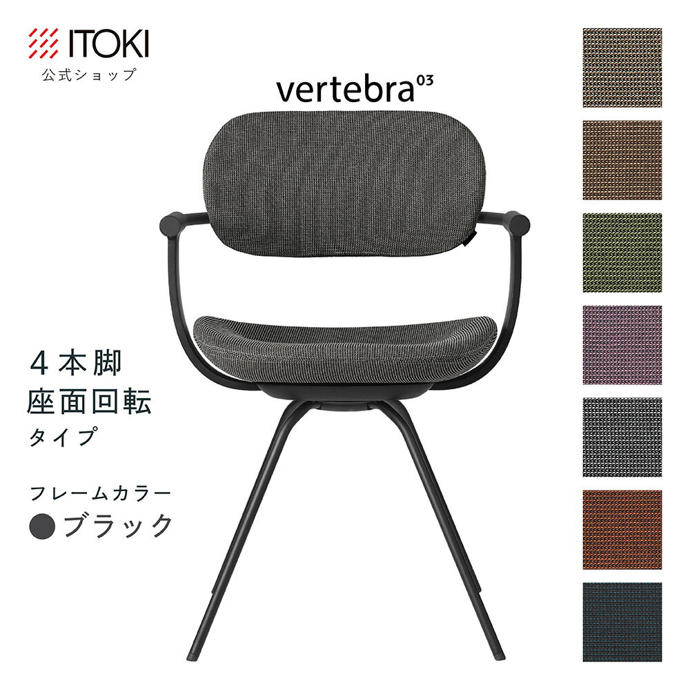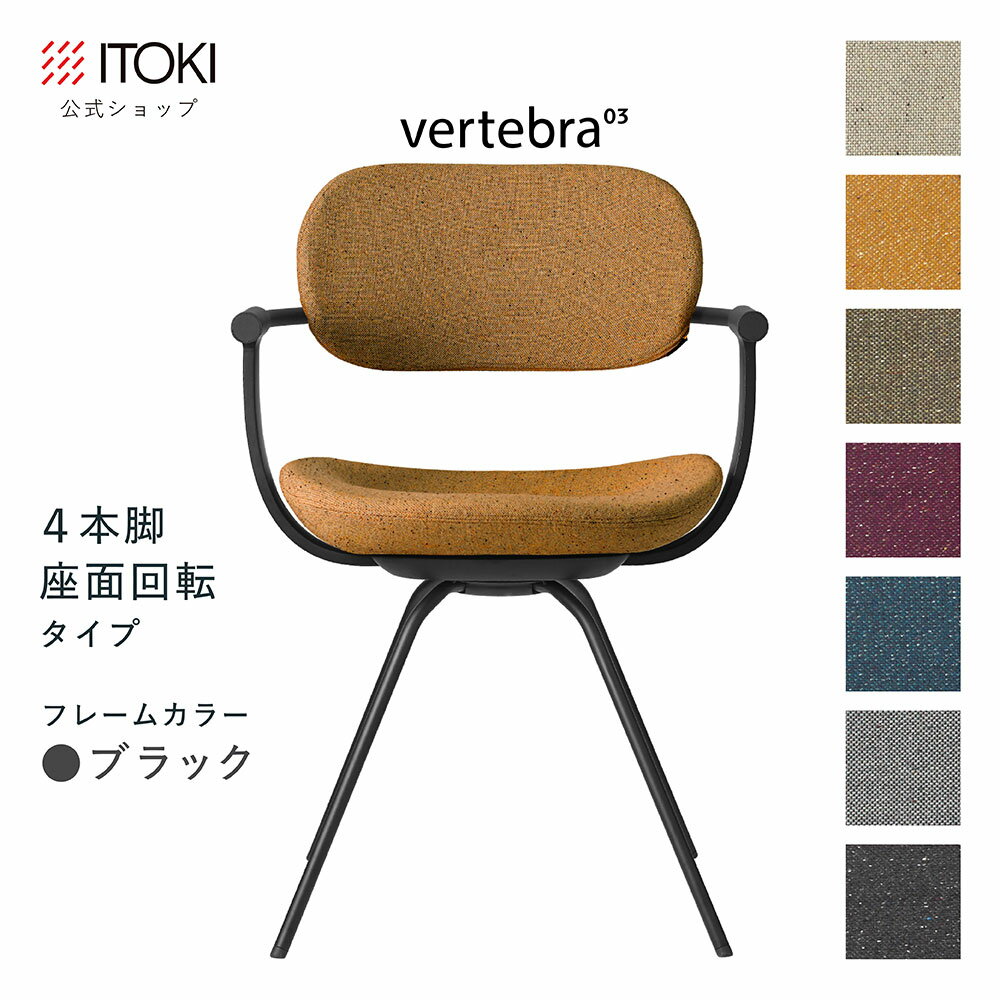 (クリスマスセールP10倍 12/22まで) (まとめ買い6%オフ) オフィスチェア デスクチェア 椅子 ロッキング おしゃれ シンプル コンパクト 柴田文江氏デザイン CD張地7色 ITOKI vertebra03 日本製 KG-855CD-T1 イトーキ バーテブラ03 公式ストアモデル 4本脚回転(ブラック)