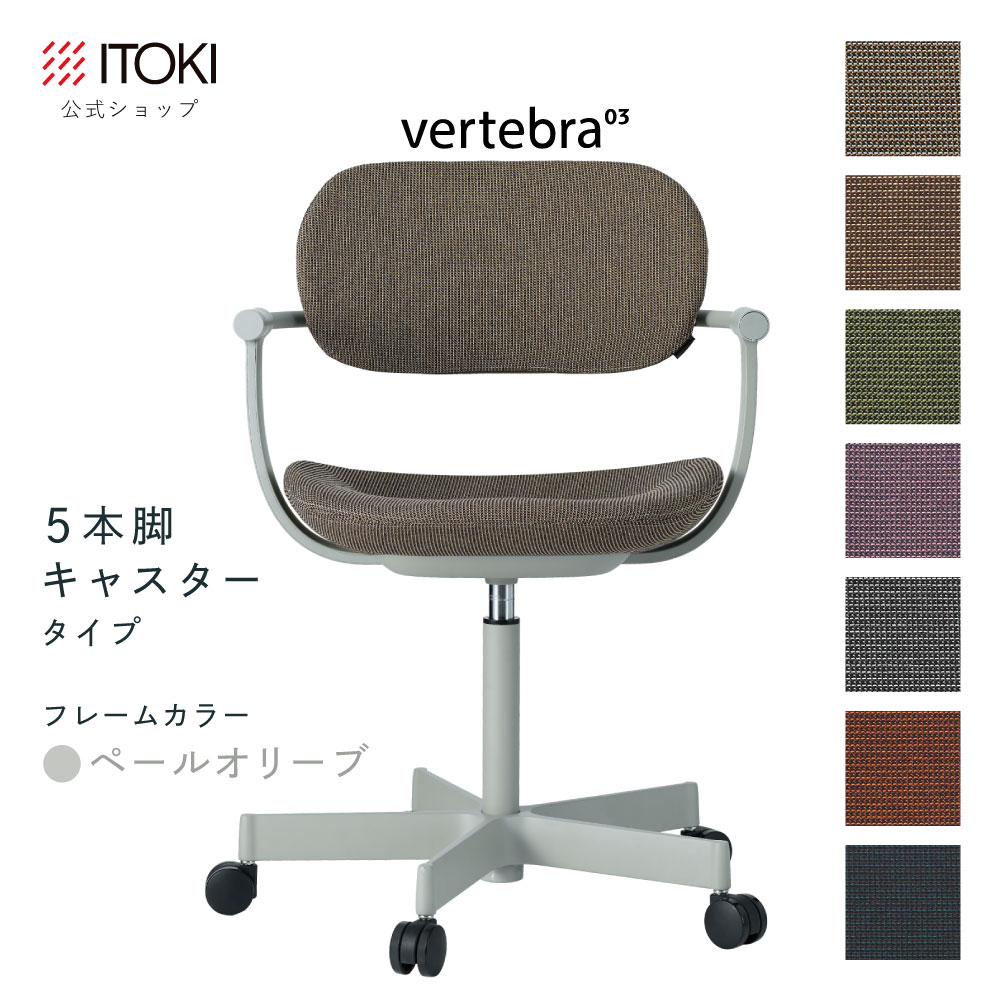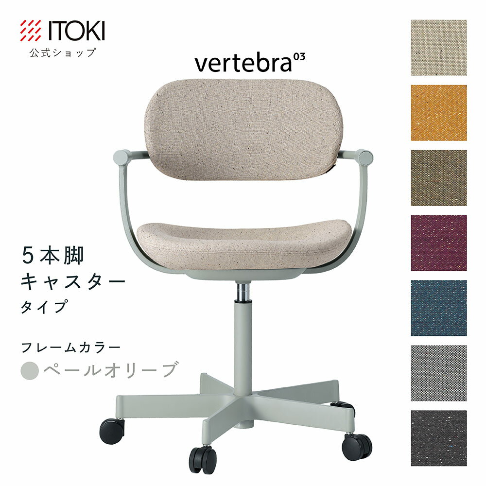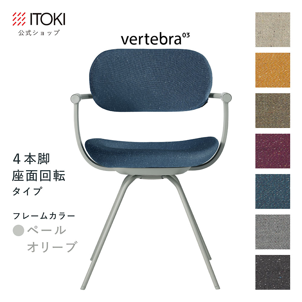(クリスマスセールP10倍 12/22まで) (まとめ買い6%オフ) オフィスチェア デスクチェア 椅子 ロッキング おしゃれ コンパクト 柴田文江氏デザイン CD張地7色 ITOKI vertebra03 日本製 KG-855CD-L4 イトーキ バーテブラ03 公式ストアモデル 4本脚回転(ペールオリーブ)