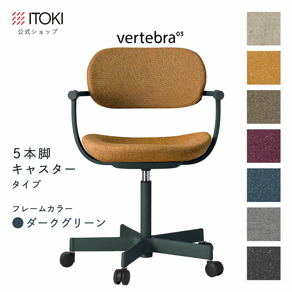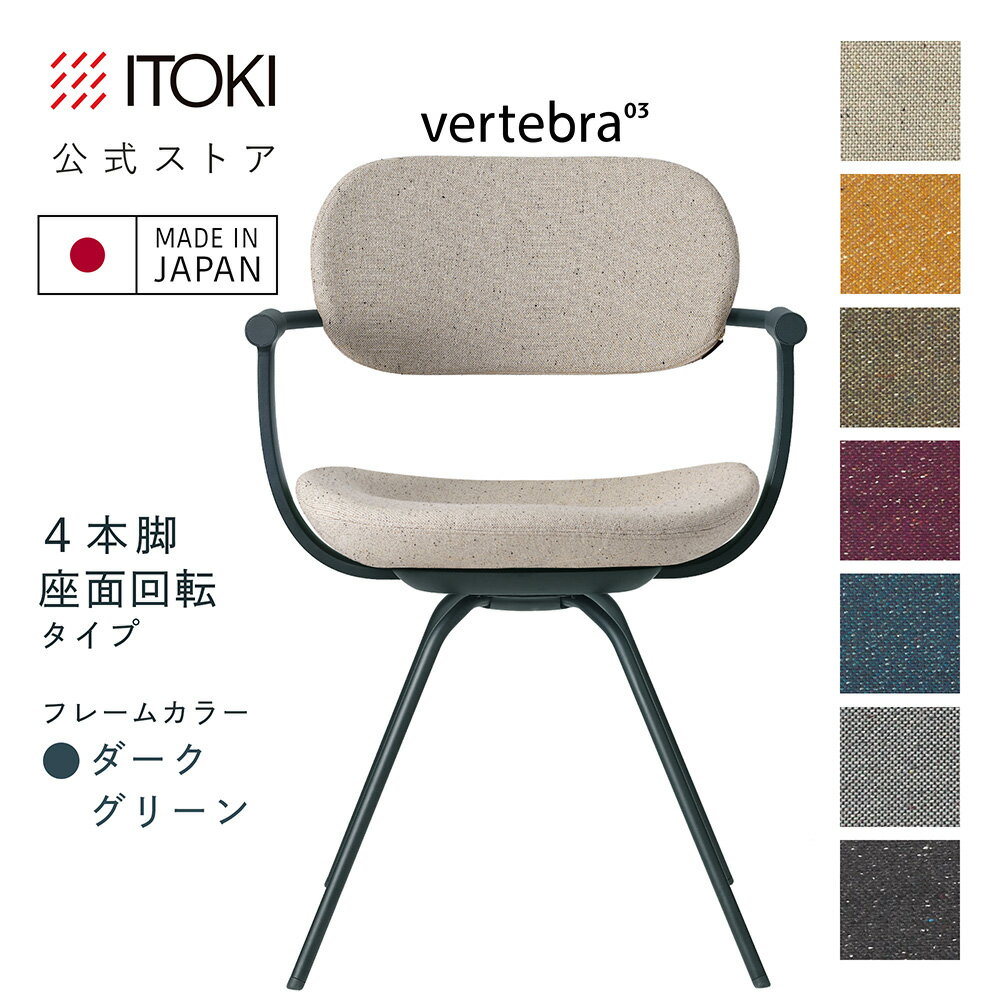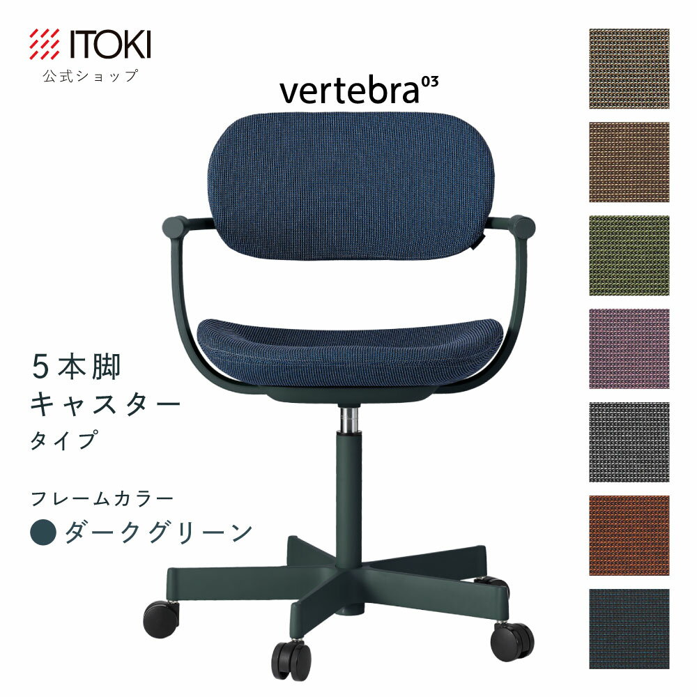 (クリスマスセールP10倍 12/22まで) (まとめ買い6%オフ) オフィスチェア デスクチェア 椅子 ロッキング おしゃれ コンパクト 柴田文江氏デザイン CD張地7色 ITOKI vertebra03 日本製 KG-855CD-G1 イトーキ バーテブラ03 公式ストアモデル 4本脚回転(ダークグリーン)