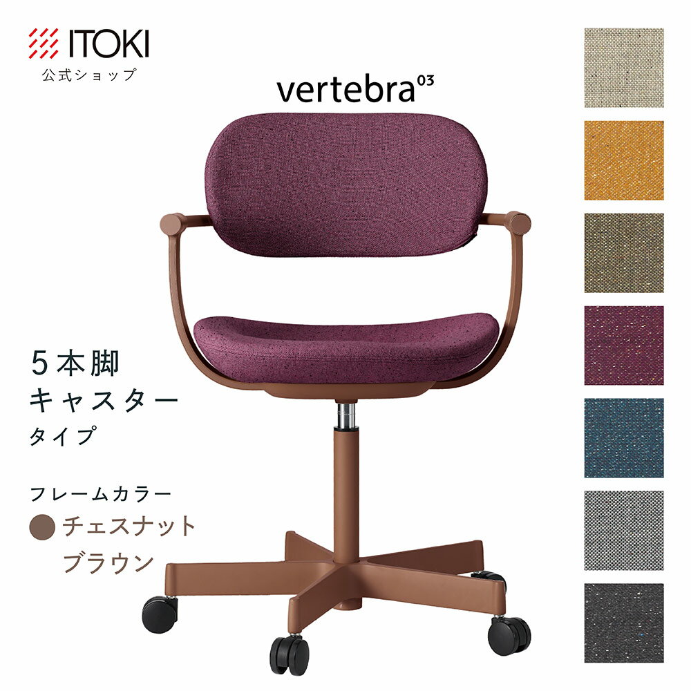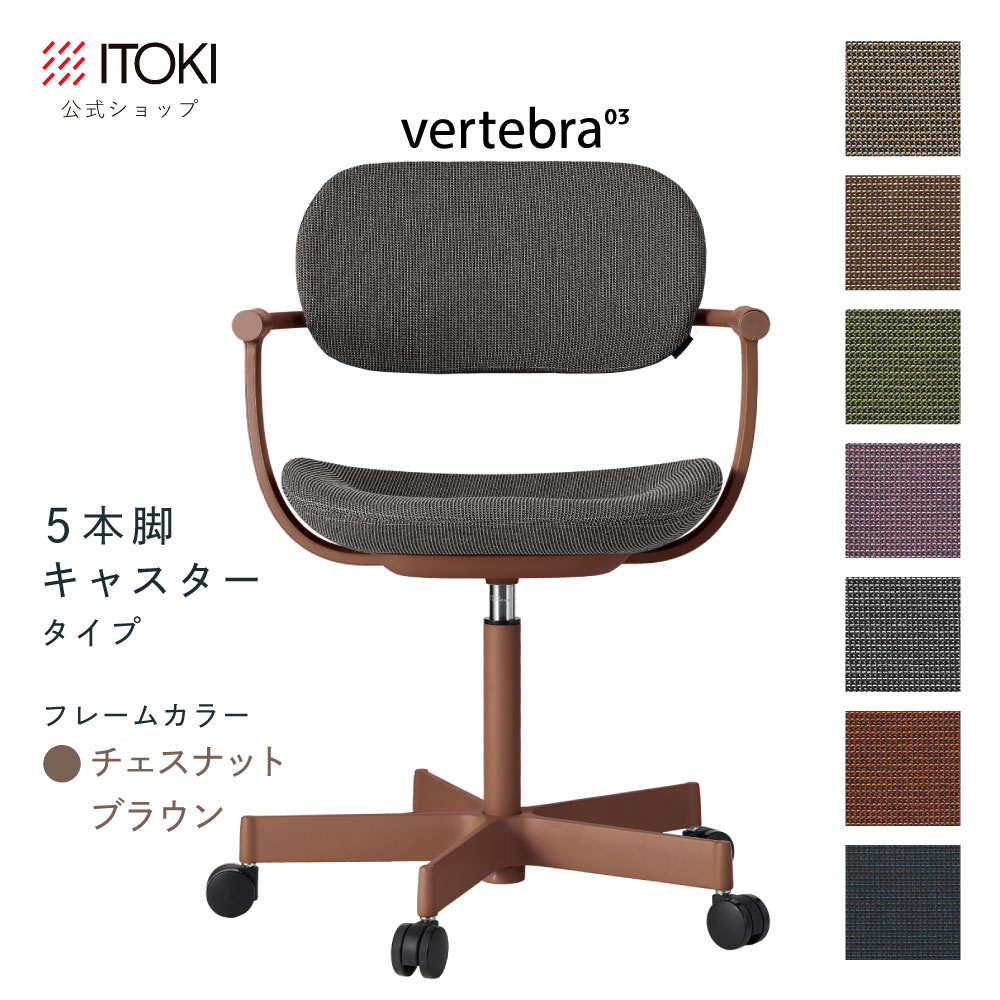 (クリスマスセールP10倍 12/22まで) (まとめ買い6%オフ) オフィスチェア デスクチェア 椅子 ロッキング おしゃれ シンプル コンパクト 柴田文江氏デザイン CD張地7色 ITOKI vertebra03 日本製 KG-825CD-F2 イトーキ バーテブラ03 5本脚キャスター(チェスナットブラウン)