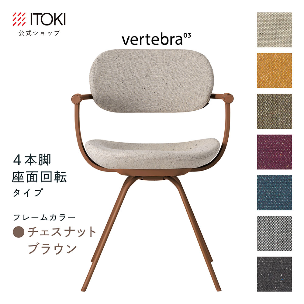 (クリスマスセールP10倍 12/22まで) (まとめ買い6%オフ) オフィスチェア デスクチェア 椅子 ロッキング おしゃれ コンパクト 柴田文江氏デザイン CD張地 ITOKI vertebra03 日本製 KG-855CD-F2 イトーキ バーテブラ03 公式ストアモデル 4本脚回転(チェスナットブラウン)