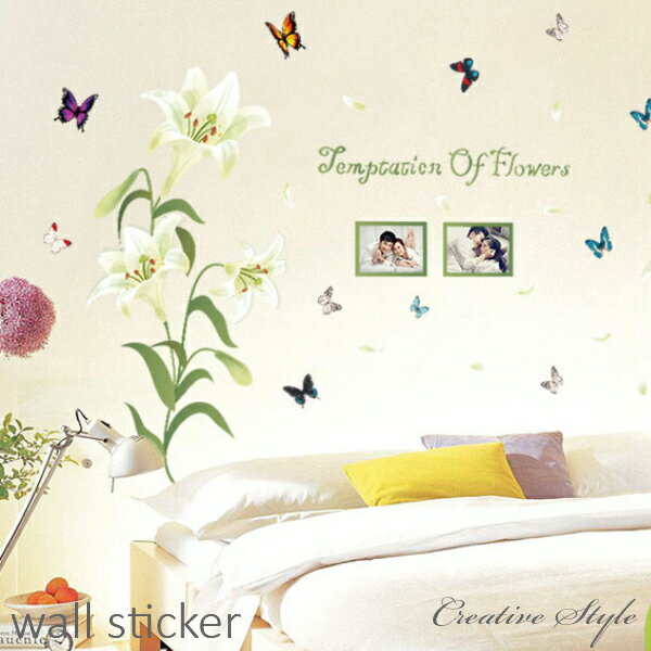 ウォールステッカー Temptation Of Flower フレーム 花 ゆり 百合 木 春 植物 グリーン 緑 壁飾り インテリア シール 壁紙 シール 北欧 オシャレ トイレ 寝室 リビング 玄関 diy 壁紙 窓 猫 海 キッチン 英字 Creative Style アルファベット 自然 ギフト★
