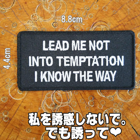 刺繍 アイロン ワッペン【LEAD ME NOT INTO TEMPTATION/私を誘惑しないで、でも誘って】スラング 英語 文字 黒 白 長方形 のりつき パッチ アップリケ バイカー ホットロッド ロックンロール ロック