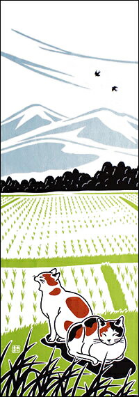 【2025年再入荷】手ぬぐい「田んぼのネコ達」猫/ねこ/Cat/風景/春/てぬぐい