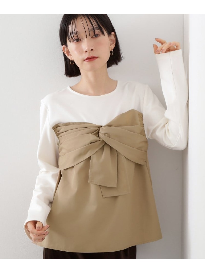 【予約商品について】 ※「先行予約販売中」「予約販売中」をご注文の際は予約商品についてをご確認ください。■重要なお知らせ※ 当店では、ギフト配送サービス及びラッピングサービスを行っておりません。ラッピング・ギフト配送について同時に複数の商品を注文された場合メーカー希望小売価格について置き配についてご利用ガイドTHE SHOP TK(ザ ショップ ティーケー)布帛切替カットソー【デザイン&ディテール】しっかりとしたポンチのカットソーに、布帛を使用してリボンタックのディテールでビスチェ風に切り替えたトップスです。シンプルながらも、リボンのアクセントが華やかさと女性らしいエレガンスをプラスし、洗練された着こなしを実現します。【素材&着心地】しっかりとしたポンチ生地が、耐久性と適度なフィット感を提供。布帛のタック部分は軽やかで柔らかな印象を与え、全体としてバランスの良いシルエットに仕上がっています。快適な着心地と良質な素材感が、一枚で存在感あるスタイルをサポートします。【着こなしポイント】シンプルなデザインなので、ジーンズやスカート、パンツなどの様々なボトムスと合わせやすく、オフィスカジュアルからデイリールックまで幅広いシーンで活躍します。レイヤードスタイルとしても使え、単品で着用するだけでも上品で魅力的な印象を演出できるアイテムです。※照明の関係により、実際よりも色味が違って見える場合があります。また、パソコン・スマートフォンなどの環境により、若干製品と画像のカラーが異なる場合もございます。型番:20250204014510-504-12 QN0880【採寸】●製品寸法:12(M):着丈56cm B82cm 袖丈58cm 肩幅38cm13(L):着丈57cm B86cm 袖丈59cm 肩幅39cm備考:商品のサイズについて【商品詳細】中国製素材:布帛部分:ポリエステル87% レーヨン13% ジャージ部分:レーヨン66% ポリエステル29% ポリウレタン5%サイズ:12(M)、13(L)洗濯機洗い可※画面上と実物では多少色具合が異なって見える場合もございます。ご了承ください。商品のカラーについて
