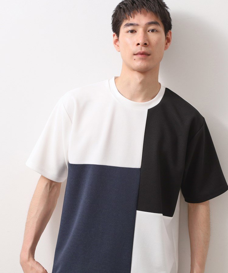 【SALE/30%OFF】THE SHOP TK ツイルブロッキング半袖Tシャツ ザ ショップ ティーケー トップス カットソー・Tシャツ ブルー ブラック