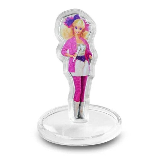 2024年 パンプ・スイス バービーとロッカー 1オンス カラー銀貨 - スタンド付き