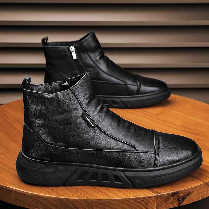 ハイカット シューズ メンズ 夏用の 男性用 ハイカット シューズ 滑り止め 加工の 作業 靴 カジュアル 革靴 英国 風 万能な 黒の メンズ ソフトレザー ブーツ 防水