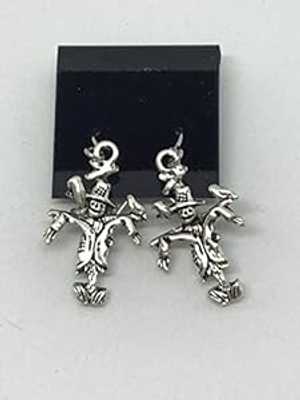 シルバートーン ハロウィン 秋のかかしチャーム ダングル イヤリング Mama Otter's Tidbits Silvertone Halloween Autumn Scarecrow Charm Dangle Earrings