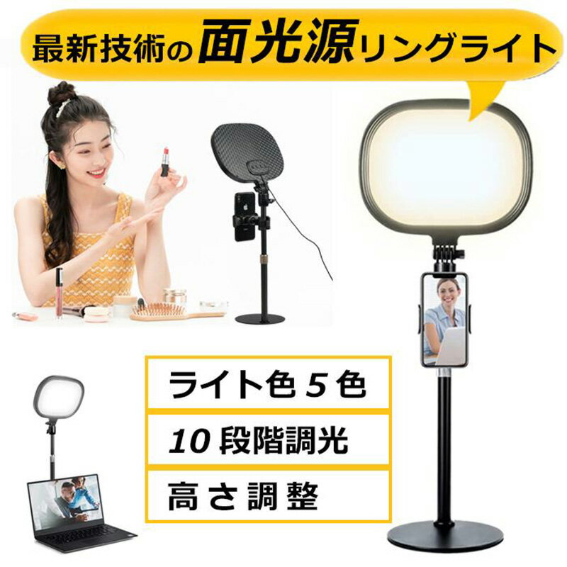 【注目の新作】 LEDリングライト デスクライト 自撮りライト ライブ配信ライト USB給電 高輝度 5色モード&10段階調光対応 TikTok YouTube生放送 Zoom会議にも最適 女優ライト ビデオカメラ撮影にもピッタリ 台座付き 安定性も抜群 読書灯