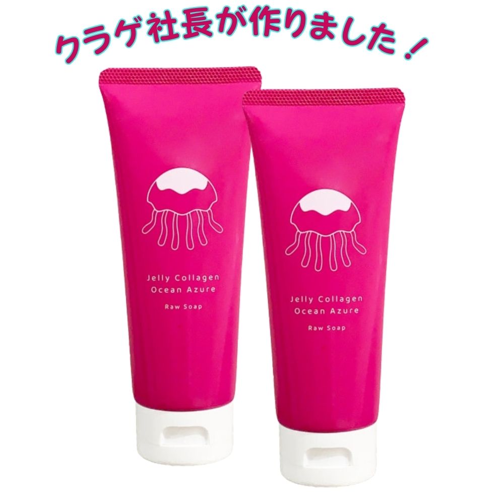 クラゲ社長が作りました! 洗顔フォーム【2本セット】無添加 洗顔 泡 毛穴 皮脂 角栓 小鼻 さっぱり しっとり クラゲコラーゲン生石鹸 オーシャンアジュール 超濃密泡 生せっけん 泡立てネット付 クラゲコラーゲン 生石鹸 100g 2 洗顔 毛穴 40代 50代 60代 保湿 エイジングケア 洗顔料 洗顔フォーム 洗顔クリーム 泡立ち 吸着 しっとり 保湿 日本 基礎化粧品 化粧品 スキンケア コラーゲン フェイスケア 毛穴 毛穴ケア 無添加 毛穴の黒ずみ ハリ 乾燥肌 ツヤ 浸透 顔 濃密泡 泡 乾燥 フェイス ふわふわ ヒアルロン酸 しっとり 乾燥 つっぱらない 混合肌 潤い 保湿 泡パック 女性 男性 ユニセックス メンズ レディースシミ ニキビ 美白 洗顔ネット 付き ウオッシュ 泡立てネット付 濃密泡【クリニックで販売】クリニックでも過度に脂を落とさず、敏感肌にも使えるとして販売されている洗顔フォームです。クラゲコラーゲン石鹼 オーシャンアジュール泡のきめ細かさで肌の汚れを吸収します無着色、無香料、無鉱物油、界面活性剤不使用、アルコールフリー、パラベンフリー で肌に優しい洗顔フォームです。独自の低温製法でじっくり練り上げた生クリームのような洗顔フォーム。濃密泡なのに、すすぎがとても楽ちんです。クラゲコラーゲンって新しいと評判です。クラゲコラーゲンは、牛、豚のコラーゲンの約3倍の保湿力。吸湿力は約4倍。軽いお化粧なら落とせる、クレンジングと洗顔機能。男性よりシェービングクリームとして感動したとお声を頂戴しております。きめ細やかなモコモコの泡立ちで脂を吸引します。汚れ落としは泡で決まります!・濃密泡で肌を傷つけず汚れを吸着させる泡・濃密だけど洗い上がりがさっぱりで洗い残しがない・落ちた皮脂を補うためクラゲコラーゲンの保湿力を使う・乾燥を防ぐため、クラゲコラーゲンでバリアを張る・無香料、無職色、界面活性剤、アルコール不使用で肌に優しいクラゲは一番古くからコラーゲンを使って進化して来ました。肌への親和性がもっとも高いコラーゲンになります。ピンコラ(ピンクの容器のクラゲコラーゲン)は、洗浄力を必要な分に抑え、落ちてしまったものを補い保護します。【全成分】グリセリン、水、ミリスチン酸、水酸化K、パルミチン酸、ポリグリセリルー4ラウリルエーテル、ラウリン酸、ステアリン酸、ジステアリン酸グリコール、コカミドプロピルベタイン、水溶性コラーゲン、カンナビジオール、BG、ステアリン酸グリセリル(SE)、マカデミア種子油、ホホバ種子油、グリチルリチン酸2K、フェノキシエタノール 2