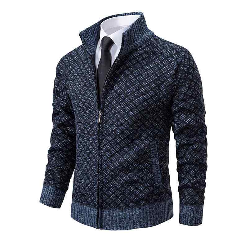 ・カテゴリ: ニット・スタイル: カーディガン・シルエット: ストレート・ネックライン: スタンドカラー・袖丈: 長袖・厚さ: 標準・テイスト: ベーシック・デザイン: 切り替え・主な素材: ポリエステル75%・着用シーン: カジュアル・着用シーズン: 春秋・対象: メンズ大人・カラー展開: ライトグレー、ダークグレー、ブラック、ワインレッド、ブルー・サイズ展開: M、L、XL、XXL、XXXL・加工: アイロン不要
