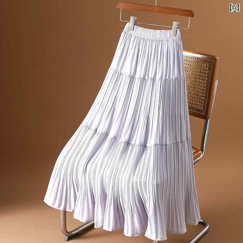 合わせやすい フレア スカート ホワイト シフォンプリーツスカート レディース 夏 ゆったり 大きめ スカート aライン ロング エレガント フェアリー ミディアム ハイウエスト