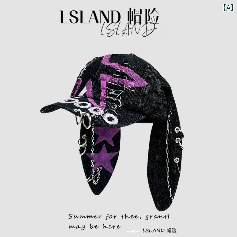 帽子 うさぎ耳 かわいい Y2K ウェイストランド スタイル ウサギ 耳 デニム 破れ 野球帽 女性 ダーク ストリート ダックビル ハット