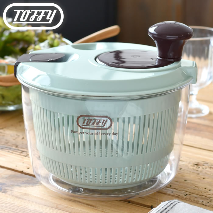 スピナー 水切り Toffy サラダスピナー 野菜水切り器 3L 時短 生野菜 ザル バスケット ボウル 回転 素早く ハンドル 葉物 分解 調理器具 遠心力 保存容器 キッチン シャキシャキ