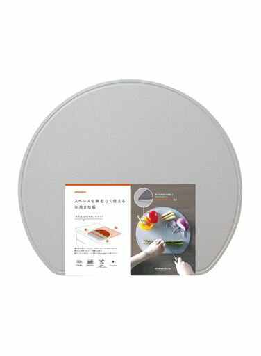 丸型の手前部分をカットした「スペースを無駄なく使える半月まな板」長方形のまな板に比べて面積が広く奥行きがあるので、切った食材をまな板上部に置いたまま他の食材をカット出来ます。シンプルかつ実用的なデザインで一人暮らしにもおすすめ。 溝がある面と溝が無くフラットな面の両面使える仕様なので、切る食材で分けることも可能です。毎日の料理からキャンプやバーベキューなどのアウトドアまでお使いいただけます。 ポリプロピレンに「熱可塑性エラストマー」が配合されているので、適度な硬さと程よい弾力があるのが特徴。包丁の刃あたりが優しいので、食材が切りやすく刃こぼれを防ぎます。まな板自体にも深いキズが付きにくいので安心です。 切り終えた食材を載せたまま、複数の食材をいっぺんに切れるので、省スペースでも扱いやすいです。軽い(約216g)ので、食材を移すときも扱いやすいです。使わないときは立てて収納することができます。 お手入れは食器洗浄機や熱湯消毒ができるので、清潔にお使い頂けます。抗菌仕様なので菌が繁殖しにくく、毎日清潔にお使い頂けます。抗菌性試験:JISZ2801