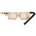 ローラー・バックル付きの2インチ幅のウェブ・ベルト、4つのメイン・ポケット、8つの小ポケットと袖、スイング・ハンマー・ループ付きエプロンです。 ●ヘビーデューティーレザーを使用 ●4つのメインネイル&ツールポケット ●ペンチ、ネイルセット、鉛筆などが入る小さめのポケットが6つ ●二重マチによりフロントポケットは大きく開き、出し入れしやすい ●テープや釘などの工具を収納できるセンターポケット ●コンビネーションスクエアにフィットする成型レザーホルダー ●金属製のスイング・ハンマー・ループ ●ローラーバックル付き2インチポリウェブベルト ●適合ウエストサイズ:29インチ-46インチ
