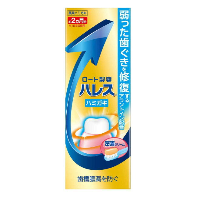 [関連]: ロート ROHTO 歯磨き 歯みがき はみがき ハミガキ 歯磨き粉 歯みがき粉 はみがき粉 ハミガキ粉 歯槽膿漏 ●製品の特徴 〇歯ぐきに留まる密着クリームが、薬用成分を歯ぐきに届かせます。 〇研磨剤無配合で摩擦が少なく、弱ってきた歯ぐきも傷つけません。 〇クリーム状の製剤で歯ぐきを優しくマッサージできます。 ●有効成分 止まらない歯槽膿漏を防ぎ、本体の強い歯ぐきのために再活*成分を独自処方しています。 *歯ぐきを修復(再活性化)するアラントイン配合 ●効果・効能 歯槽膿漏の予防 歯肉炎の予防 口臭の防止 むし歯の発生および進行の予防 歯を白くする 口中を浄化する 口中を爽快にする ●製造・販売・お問い合わせ先 会社名:ロート製薬株式会社 住所:大阪市生野区巽西1-8-1 電話:03-5442-6020 受付時間:9:00-18:00(土・日・祝日を除く) 広告文責・お問い合わせ 紅屋商事株式会社 TEL:0172-27-7744 お問い合わせ : 商品ページの「商品について問い合わせ・質問する」ボタンよりお問い合わせください。 ●●●ご注意●●● ●リニューアル等により、パッケージデザインは予告なく変更されることがあります。お届けの商品と異なる場合がございますのでご了承ください。 ●メーカーが告知なしに成分等を変更することがごくまれにあります。実際お届けの商品とサイト上の表記が異なる場合がありますので、ご使用前には必ずお届けの商品ラベルや注意書きをご確認ください。さらに詳細な商品情報が必要な場合は、メーカーにお問い合わせください。 ●メーカー販売中止等により、ご注文の商品をご用意できない場合がございます。その際はメールでご連絡をいたします。ご了承ください。 ●商品によってはお取り寄せになる場合があり、発送までお時間を頂く事がございます。その際はメールにてお知らせいたします。ご了承ください。●区分:オーラルケア ●分類:歯磨き ●薬事区分:医薬部外品 弱った歯茎を修復 アラントイン配合 本来の強い歯ぐきのために