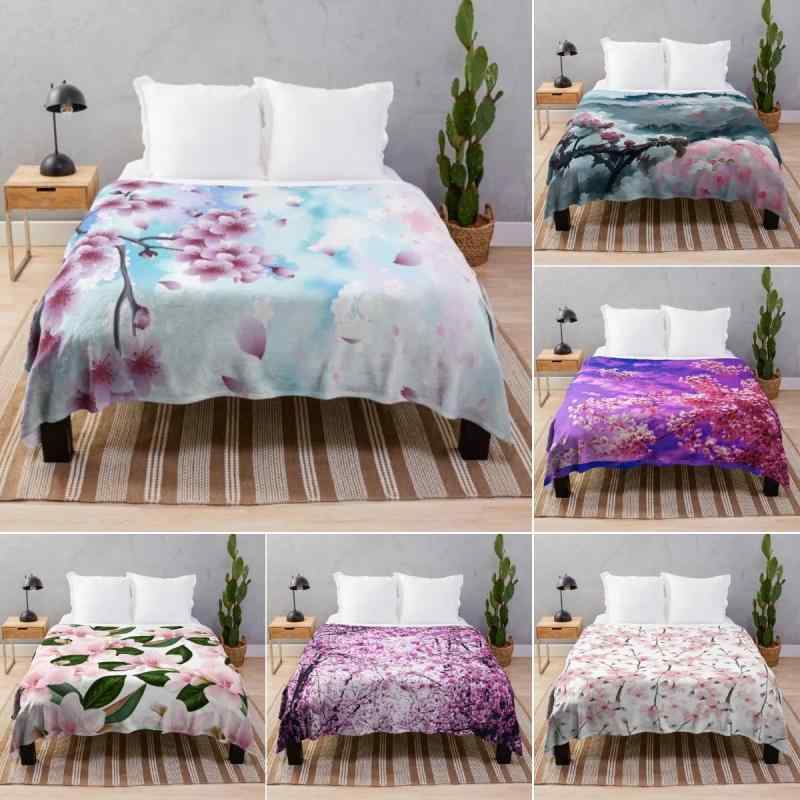 毛布 フランネル 桜 花柄プリント ポリエステル オールシーズン 軽量 やわらか 暖かい ブランケット リビング ソファ ひざ掛け 肌触り快適