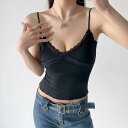 キャミソール レディース レース コットンブレンド Vネック ショート丈 トップス スリムフィット 無地 ブラック ホワイト ブルー グレー ベージュ パープル 春夏