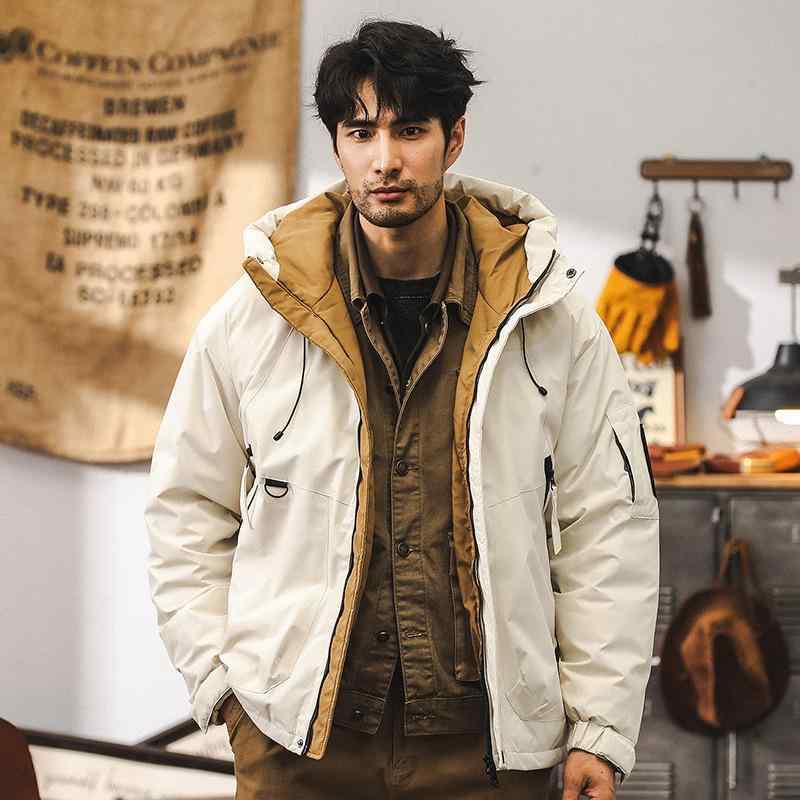 ダウンジャケット メンズ フード付き ビッグシルエット ルーズフィット ゆったり 厚手 防寒 保温 アメリカンヴィンテージ ワーク アメカジ ロング丈 ジップアップ アウター コート 秋冬 男性用
