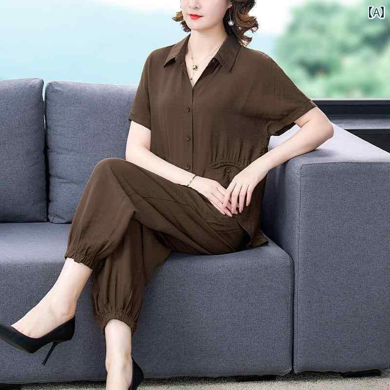 レディース ツーピース シルク 西洋風の 年齢を 減らす 母親の 服装 綿 リネンの スーツ 女性 夏の な スリム リッチ レディ レジャー ツーピース