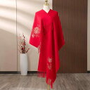 ストール 花柄 刺繍 レディース スカーフ ショール 春秋 ウール 牡丹 タッセル マント 大判 レトロ レッド グレー