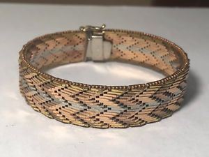 【送料無料】ブレスレット アクセサリ— ゴールドファンシーシェブロンデザインイタリアブレスレットtricolored gold fancy chevron design italian 15mm wide bracelet 7 14