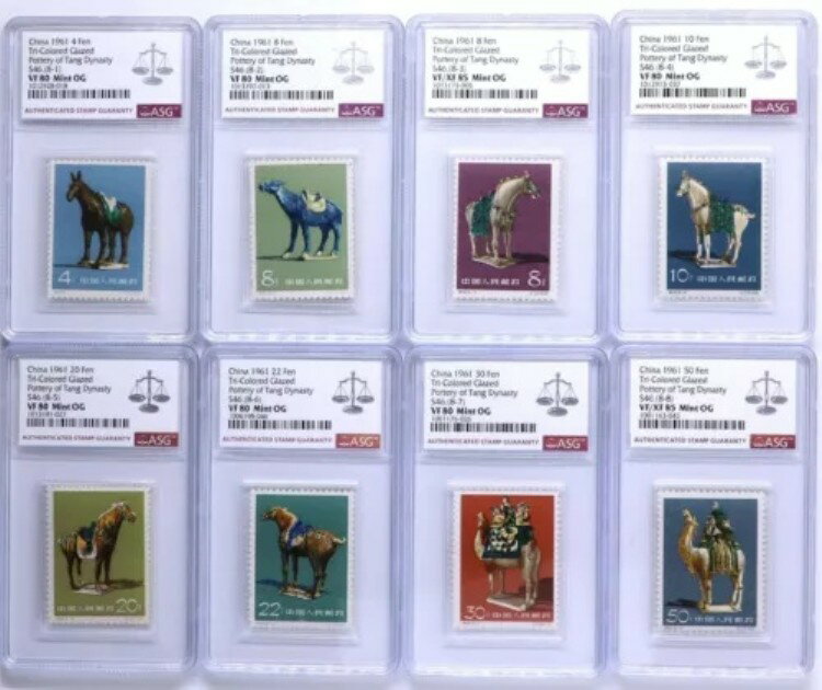 ASG 中国 1961年切手(8枚セット) - 唐の三彩釉陶器
