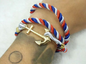 【送料無料】ブレスレット アクセサリ— オリジナルロープコードアンカーoriginal bracelet rope cord tricolour blue white red gold navy anchor