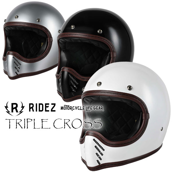 ★送料無料★RIDEZ TRIPLE CROSS(ライズトリプルクロス)ヴィンテージテイストが鮮烈で旧車にもドハマりです! バイク用フルフェイスヘルメット/ライズ