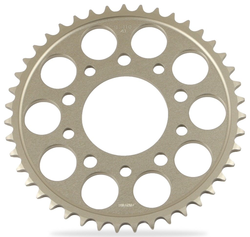 ■注意■この商品は下記となります。必ずご確認ください。丁数:43■他の商品はこちらです丁数:44はこちら※リンク先に商品がない場合、すでに完売している商品となります。予めご了承ください。■商品概要■リア用■適合チェーンサイズ:530【素材/材質】ウルトラジュラルミン(A7075)材 (硬質アルマイト仕上げ)【カラー】シャンパンゴールド色【重量】スチール(純正)などの約1/3【仕様】耐久性:10000-20000km(※)■詳細説明素材にウルトラジュラルミン(A7075)材を採用し、硬化熱処理T6を加えた後、一枚ずつマシニング加工。さらに表面には特殊硬質皮膜処理(ハードアルマイト)を施し、一般のアルマイト製品に比べ、優れた硬度と耐久性を誇ります。また、十分な強度を確保しながらも大胆な切削加工により、バネ下の軽量化に大きく貢献します。さらに、加工時における硬質独自の自然発色は色あせする事もありません。スプロケット講座-基礎編- こまめなメンテナンスがバイクに長く乗る秘訣です!SUNSTAR(サンスター)【WebikeTV】↓■注意点※コンバート用設定の適合車両には、純正サイズのチェーンは使用することが出来ず、チェーンサイズのコンバートを行わなければ使用する事ができません。※お届け商品のお色や形状は画像と違う場合もございます。予めご了承をお願い致します。※純正のスプロケットの丁数から著しく変更を致しますと、車種によっては取付が出来なくなる場合がありますのでご注意下さい。※耐久性は参考値です。走り方、チェーンサイズ、メンテナンス状態などに大きく左右されます。※オフセット数値はスプロケット単体です。※ノーマルから実際にチェーンラインがオフセットする数値は車種により異なります。ノーマルスプロケットがもともとオフセットしている形状の場合、その数値が差し引きとなりますのでご注意ください。(車種ごとにことなります)※設定されている歯数の全てが車体等へ干渉なく取り付けができるということではありませんのでご注意ください。歯数に応じた、各車体ごとの取り付け確認はお客様自身でお願い致します。※メーカー都合により商品の仕様変更がある場合がございます。ご了承ください。 ※画像はイメージです。■適合車種CB1000 CB1000 年式: 94-95CB1100F CB1100F 年式: 83CB1100R CB1100R 年式: 81CB750F INTEGRA CB750F INTEGRA 年式: 82CB750F CB750F 年式: 79-83 CB750F 年式: 80-83CB900F CB900F 年式: 79-83CBR1000F CBR1000F 年式: 87-88 CBR1000F 年式: 89-92 CBR1000F 年式: 93-95CBX1000 CBX1000 年式: 79-80 CBX1000 年式: 81-82CBX750F BOL D’OR CBX750F BOL D’OR 年式: 85CBX750F CBX750F 年式: 84-86VF1000F Interceptor VF1000F Interceptor 年式: 84VF1000F VF1000F 年式: 84-88VF1000R VF1000R 年式: 84-86VF750F VF750F 年式: 83-85VFR750F VFR750F 年式: 86-89ADVENTURE ADVENTURE 年式: 96-01DAYTONA1200 DAYTONA1200 年式: 91-96 DAYTONA1200 年式: 97DAYTONA750 DAYTONA750 年式: 91-98DAYTONA900 DAYTONA900 年式: 91-97LEGEND TT LEGEND TT 年式: 98-01SPEED TRIPLE SPEED TRIPLE 年式: 94-97SPRINT SPRINT 年式: 93-98THUNDERBIRD SPORT THUNDERBIRD SPORT 年式: 95-03 THUNDERBIRD SPORT 年式: 99-04TIGER TIGER 年式: 01-04 TIGER 年式: 93-00TRIDENT750 TRIDENT750 年式: 91-95TRIDENT TRIDENT 年式: 93-98TROPHY900 TROPHY900 年式: 93-98TROPHY TROPHY 年式: 00 TROPHY 年式: 91-92 TROPHY 年式: 93-99