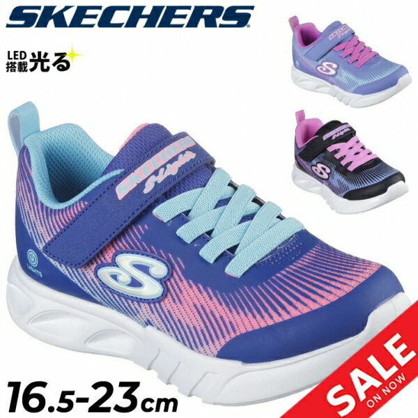 送料無料 スケッチャーズ 光る靴 キッズ LED スニーカー 女の子 16.5-23cm 子供靴 SKECHERS Sライツ FLICKER FLASH LIGHT TAKEO ジュニアシューズ 子ども 女児 スポーティ カジュアルシューズ ベルクロ ガールズスニーカー 小学生 運動靴 こども ブランド くつ/303704L