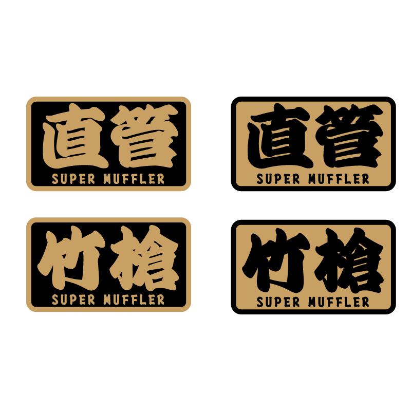 【ゴールド】直管 竹槍 ステッカー 10cm スーパーマフラー ワンポイント ヤンチャ使用 走り屋 デカール シール CB カブ ヤンキー かっこいい パロディ おもしろい SUPERMUFFLAR 爆音 ステンレスシート カミオン