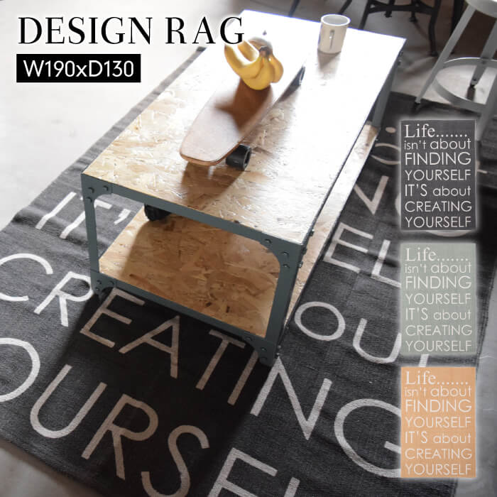ラグ マット 190 130 カーペット インテリアマット リビングマット モダン デザインラグ 長方形 おしゃれ コットン 英字 黒 ブラック グレー ベージュ TTR-126