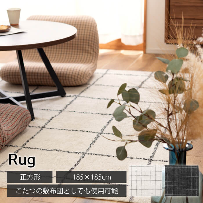 ラグ マット おしゃれ デザインラグ 北欧 正方形 大きめ 大判 チェック柄 コットン 185 シンプル インテリア 新生活 一人暮らし リビング TTR-183