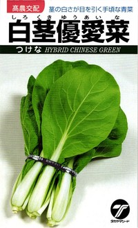 1.耐暑性強く、盛夏期でも栽培容易な 「しろな」タイプの青菜。 2.葉は鮮緑色の倒卵形で葉肉は厚い。葉柄は 純白で光沢があり、広巾で収穫や結束が容易 で荷姿が美しく市場性が高い。高温期の栽培 においても徒長しにくく株張りがよい。 3.周年栽培が可能で夏場の雨よけ栽培では播種 後25日位で収穫できる。 4.用途は広く、炒め物、煮物、漬物など多様 である。