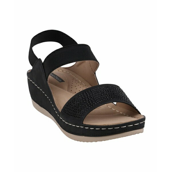 ジーシーシューズ レディース シューズ サンダル GC Shoes Women's Tammy Embellished Elastic Double Band Wedge Sandals Black ブラック