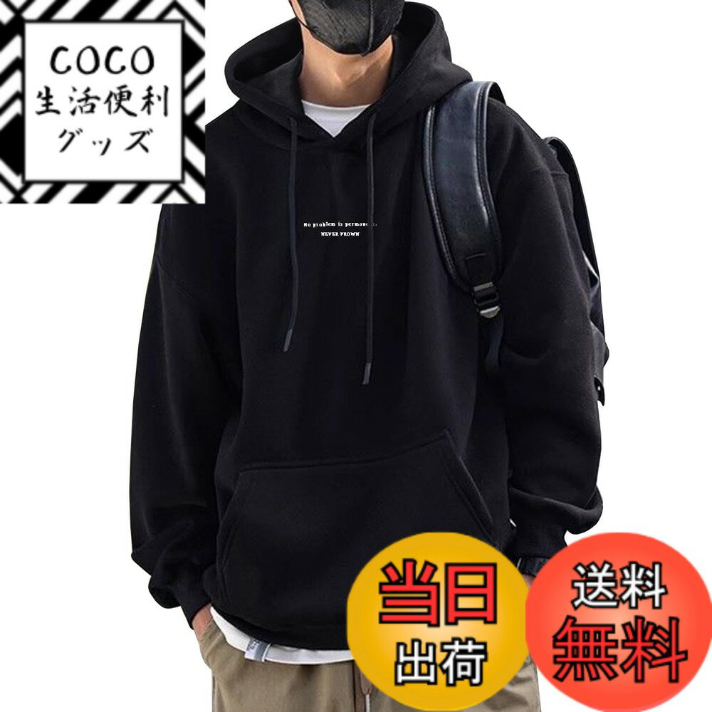 【送料無料】[EASTEMPO] パーカー メンズ 長袖 秋 トレーナー ゆったり プルオーバーパーカー おしゃれ 無地 通勤通学 大きいサイズ 色:ブラック、サイズ:XL