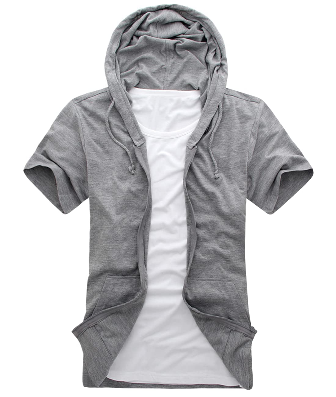 【送料無料】[EASTEMPO] パーカー メンズ 半袖 夏 薄手 ジップアップ ゆったり 大きいサイズ 色:グレー、サイズ:2XL