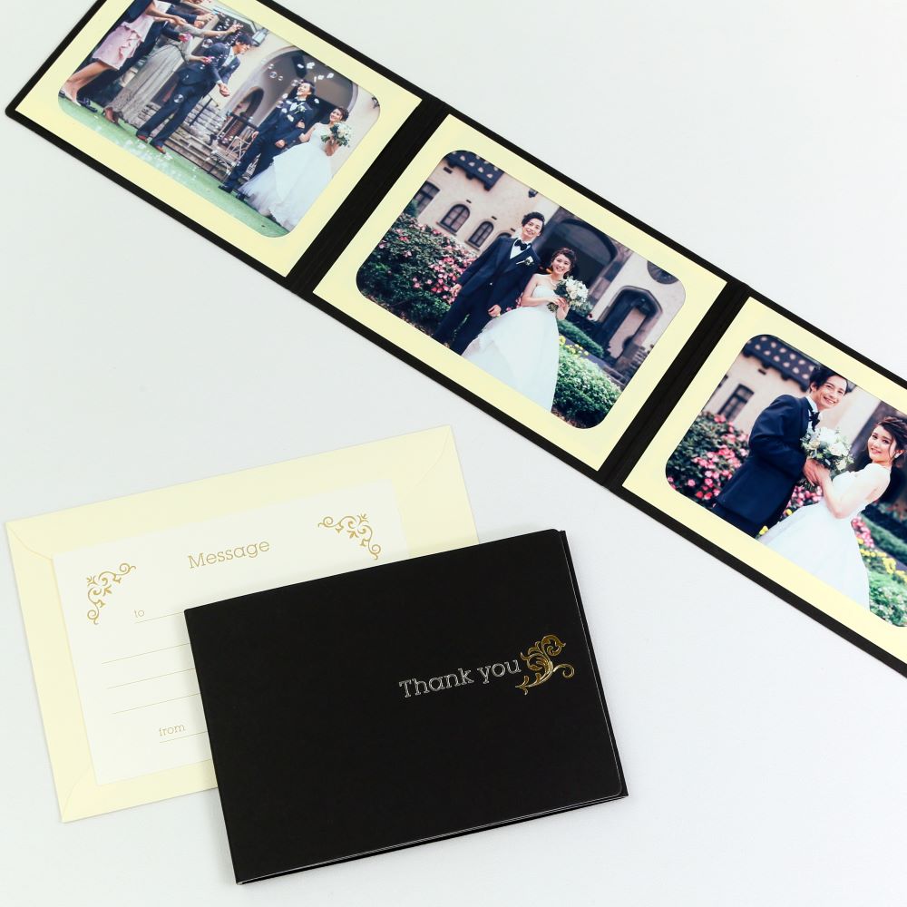 ペーパー フォトフレーム 写真台紙 Thank you/ツタ 2Lサイズ (127×178mm) 3面ヨコ ブラック