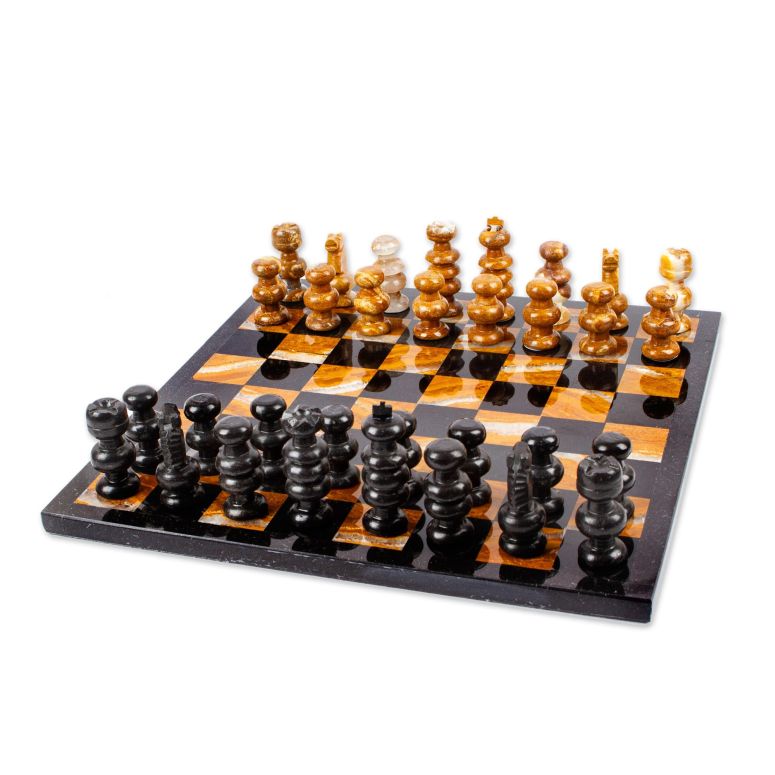 チェスセット NOVICA Artisan Handcrafted Marble Chess Set Brown Black in Mexico Sets Games [13.75in L x 13.75in W x 0.6in D Pieces 1.9in min L x 3in max L x 1in W] ' Earthen Challenge' 【並行輸入品】