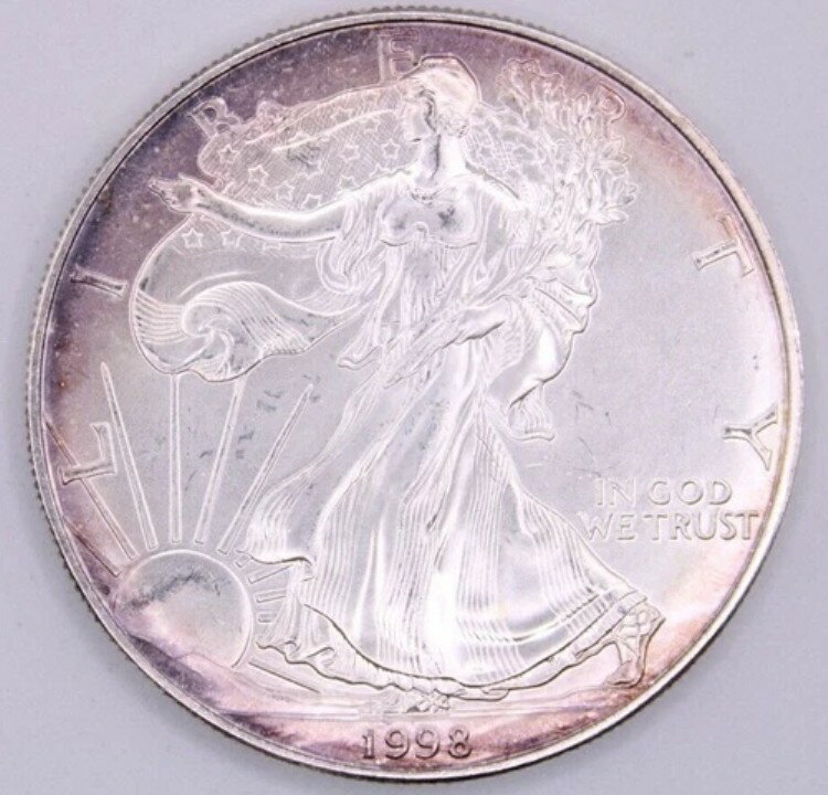 1998年アメリカンシルバーイーグル(魅惑的なバイオレットトーン)