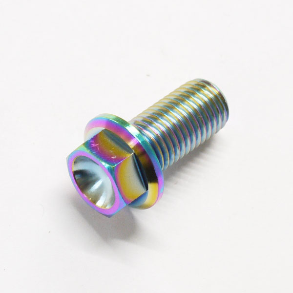 商品説明>商品名64チタンフランジボルト M10×20mm P1.25 1本商品番号TIBC020M1A商品コメント汎用の64チタン合金製のフランジボルトです。焼き色を付けてありますのできれいに輝き、チタンであることを主張してくれます。素材はチタン合金のTi-6Al-4V通称64チタンを使用しております。非常に軽量で錆びないため宇宙産業や航空産業など幅広く採用されている素材ですので安心してご使用いただけます。ネジ部分は鍛造後に転造、ヘッド部分は鍛造後に精密に切削加工しております。そのため工具のかかりもよく、ヘッド部分の型崩れもかなり少なくなります。ボルトをチタンに変更することで軽量化や錆びないこと、耐久性、強度等メリットばかりで交換して損はありません。1本での販売となります。カラーレインボー(焼き色)素材64チタン Ti-6Al-4V GR5付属品-サイズネジ長20mm M10 P1.25 フランジ径17mm 工具サイズ12mm適合車種汎用品注意事項ボルトは必ず規定トルク以内で締め付けてください。車種ごとの規定トルクは当店では把握しておりませんので、必ず車種別のサービスマニュアルを確認してください。アルミ製品等に取り付ける場合は、かじり防止のためアンチシーズやスレッドコンパウンドなどを必ず使用してください。焼き色の色合いは指定できません。取扱説明書は付属しておりません。