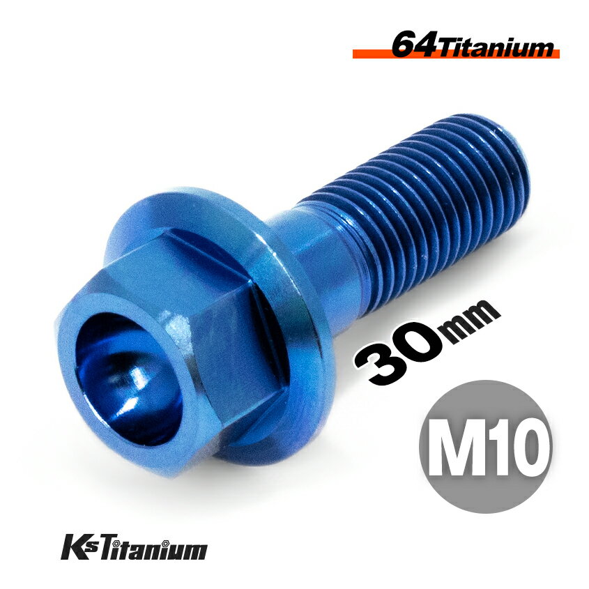 チタンボルト M10×35 P1.25 ブルー 1本 64チタン フランジボルト スレッド 30mm Ti-6Al-4V Gr5 チタン合金 バイク パーツ 自転車 ボルト M10 チタン カスタム ドレスアップ 旧車 レストア 修理 部品