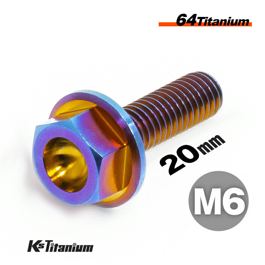 チタンボルト M6×20 P1.0 焼き色 1本 64チタン フランジボルト 全ネジ Ti-6Al-4V Gr5 チタン合金 バイク パーツ 自転車 ボルト M6 カスタム ドレスアップ 旧車 レストア 修理 部品