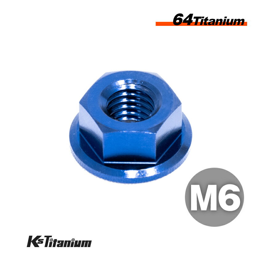 チタンナット M6 P1.0 ブルー 1個 64チタン フランジナット Ti-6Al-4V Gr5 チタン合金 バイク パーツ 自転車 ボルト M6 チタン カスタム ドレスアップ 旧車 レストア 修理 部品